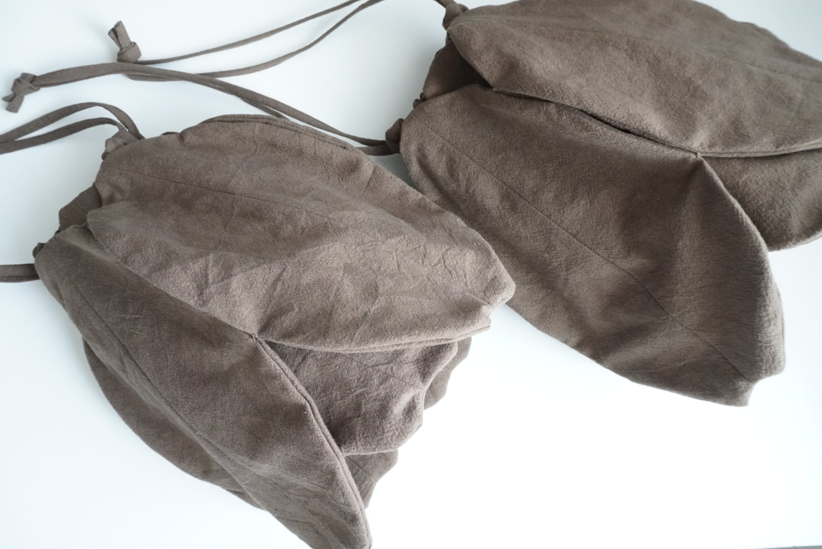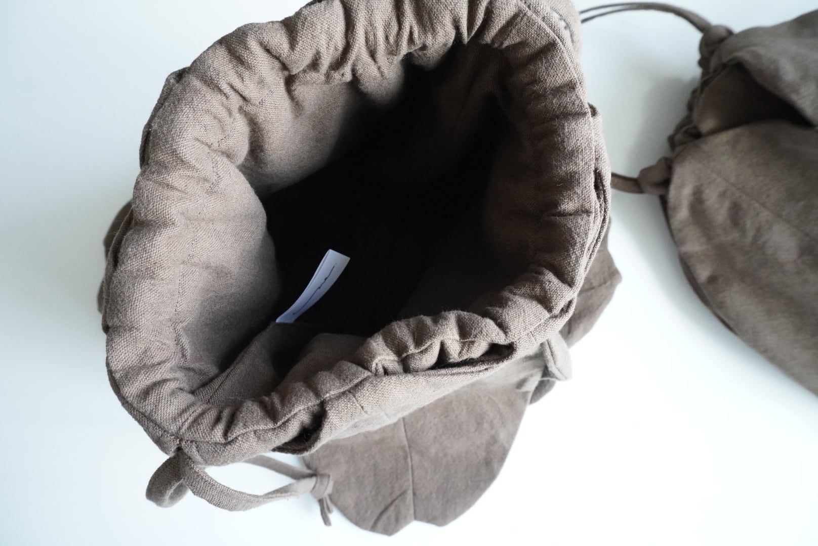 巾着にはキルト芯を使用し、ふかふかと厚みを持たせています。