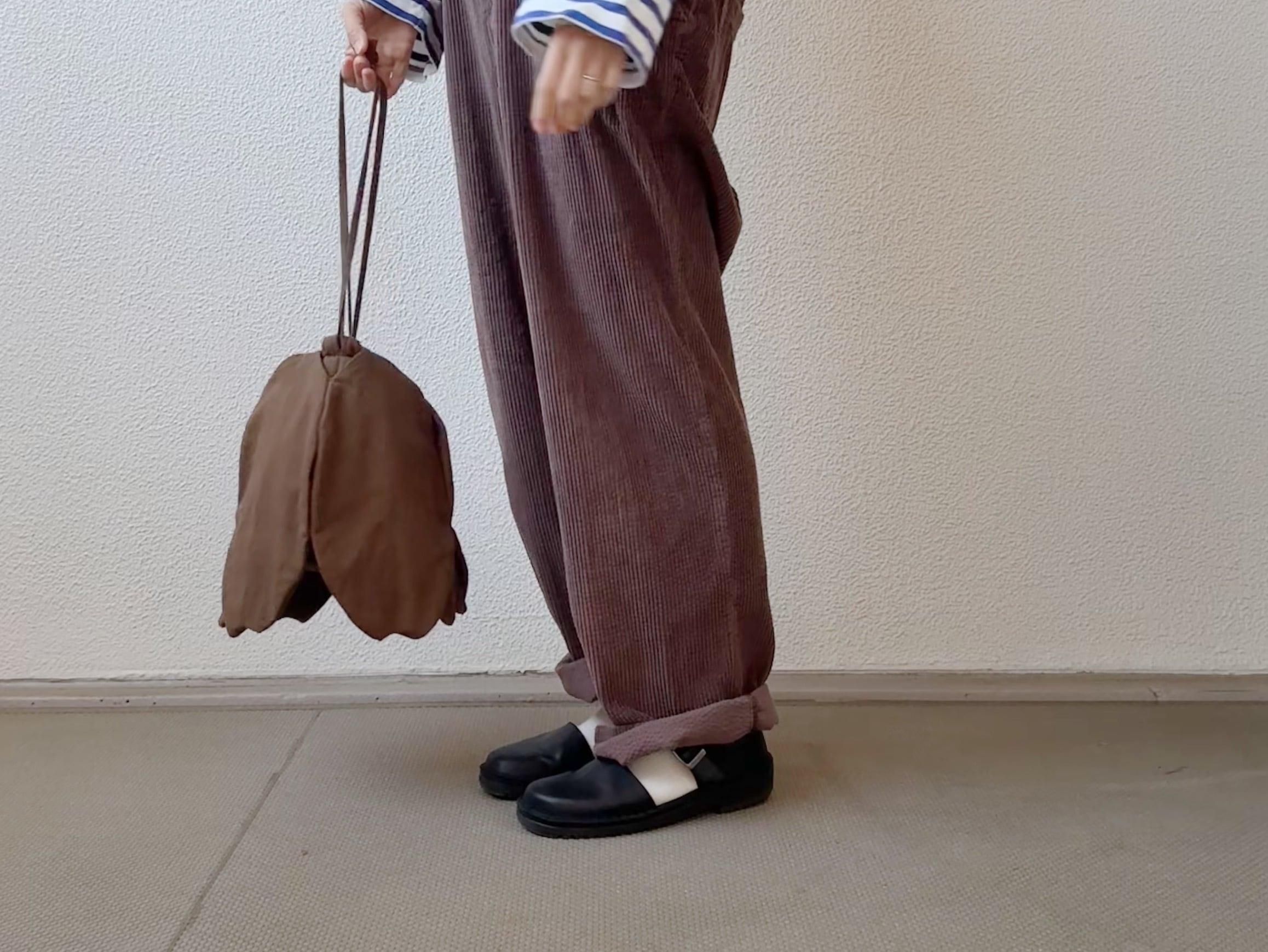 落ち着きのあるブラウンカラーのチューリップバッグです。