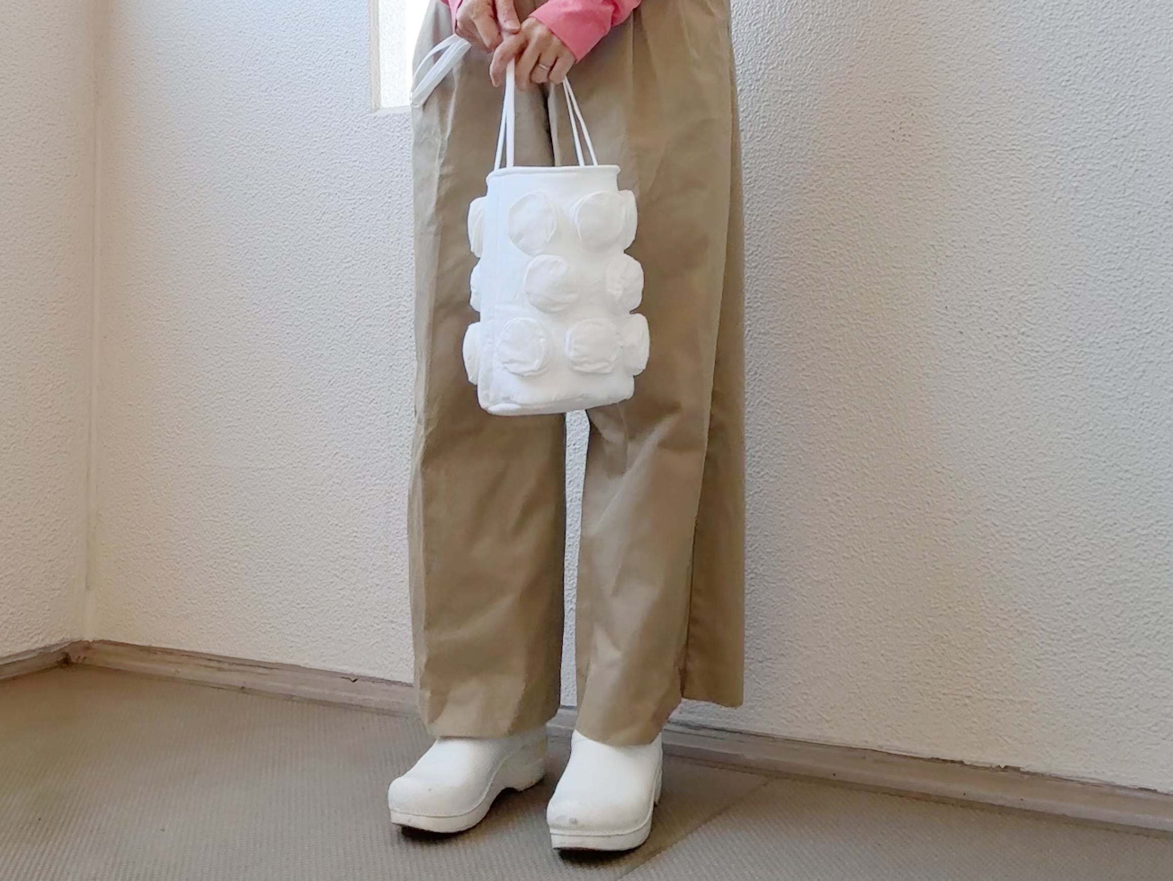 緩衝材のプチプチをイメージしてつくったバッグです。